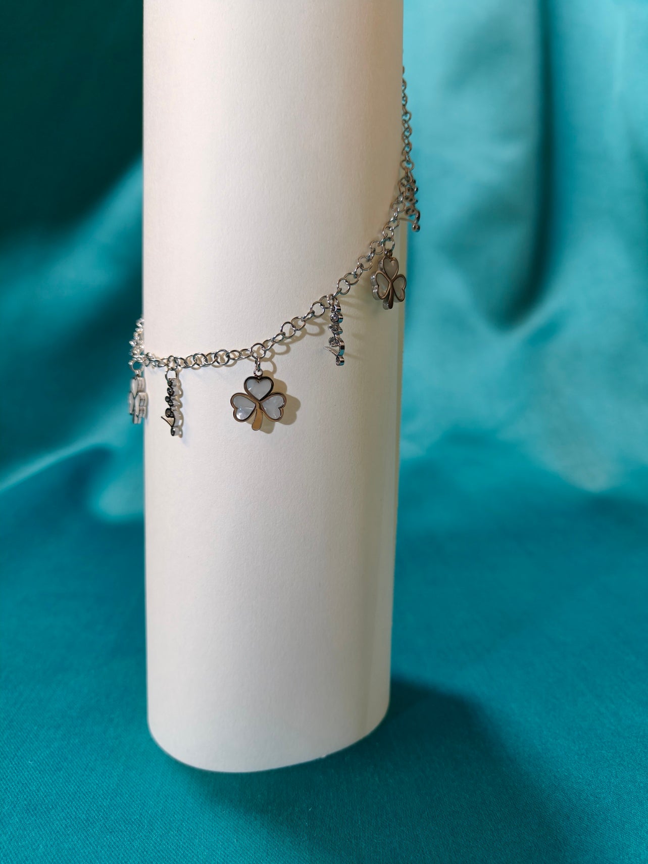 The Clover Love Charm Necklace is a graceful blend of elegance and meaning. Designed with alternating four-leaf clover charms — a universal symbol of luck — and delicate “Love” pendants, this piece captures the perfect harmony of affection and fortune. Its dainty chain and minimal design make it versatile enough to complement both casual and formal outfits. Whether worn solo for a subtle statement or layered for a chic, modern look, this necklace adds a touch of charm to every moment.