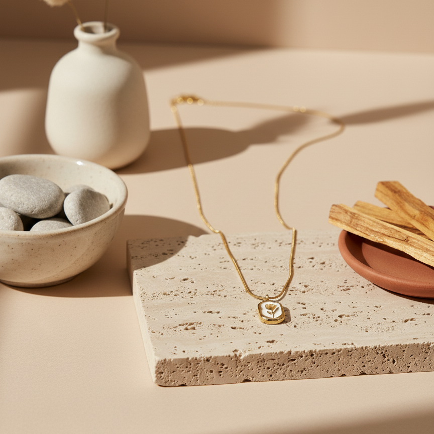 Designed with a smooth, glossy finish and a subtle gold frame, this necklace adds effortless sophistication to any outfit — from a casual brunch look to an evening ensemble. Wear it solo for understated beauty or layer it for a chic, contemporary vibe. ✨