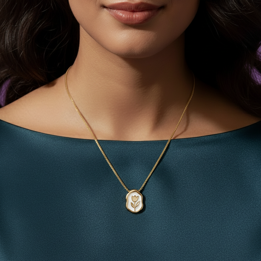 Delicate, feminine, and timeless — our Enamel Flower Necklace captures the beauty of nature in a modern, elegant form. The hand-finished enamel flower pendant adds a soft touch of color and charm, making it the perfect piece to brighten your everyday style.